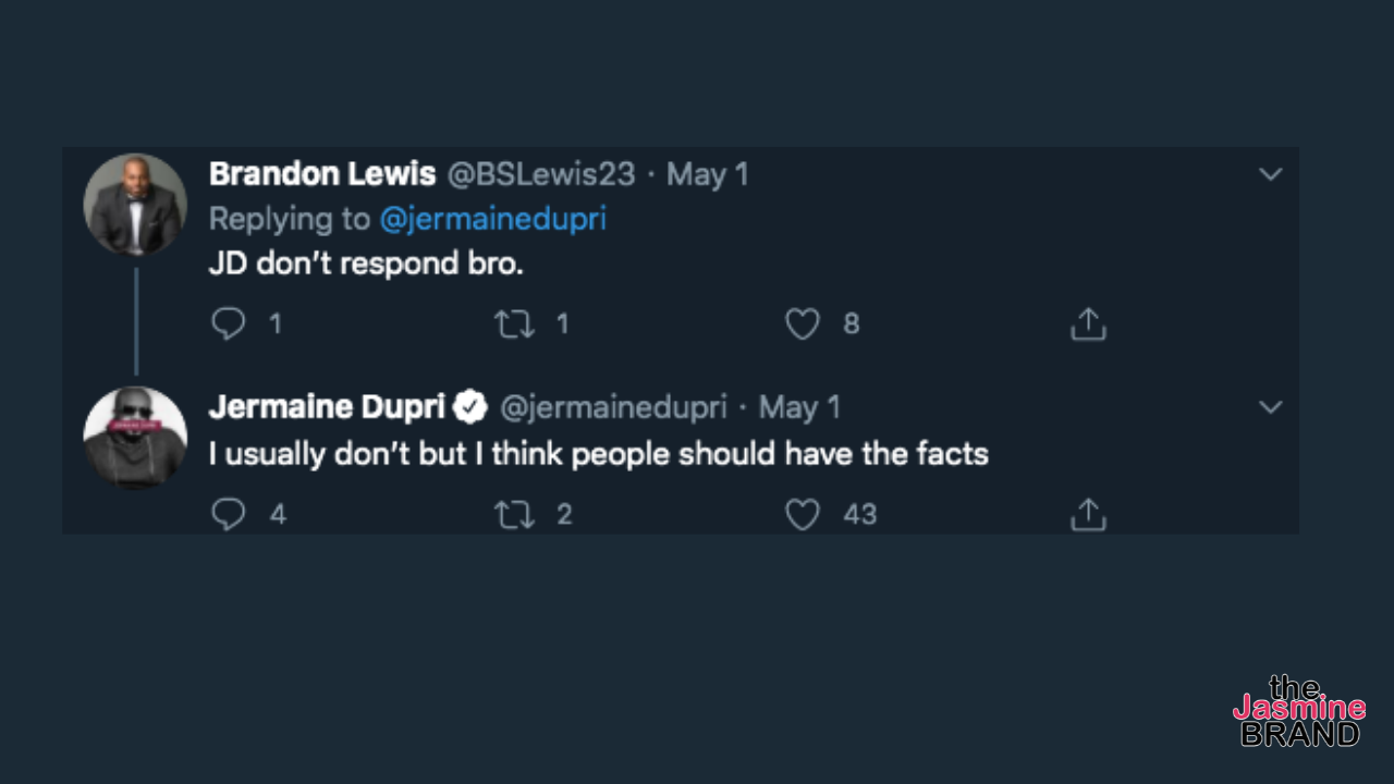 When a social media user told Jermaine Dupri not to respond to the hate he said he just wants people to know the facts.