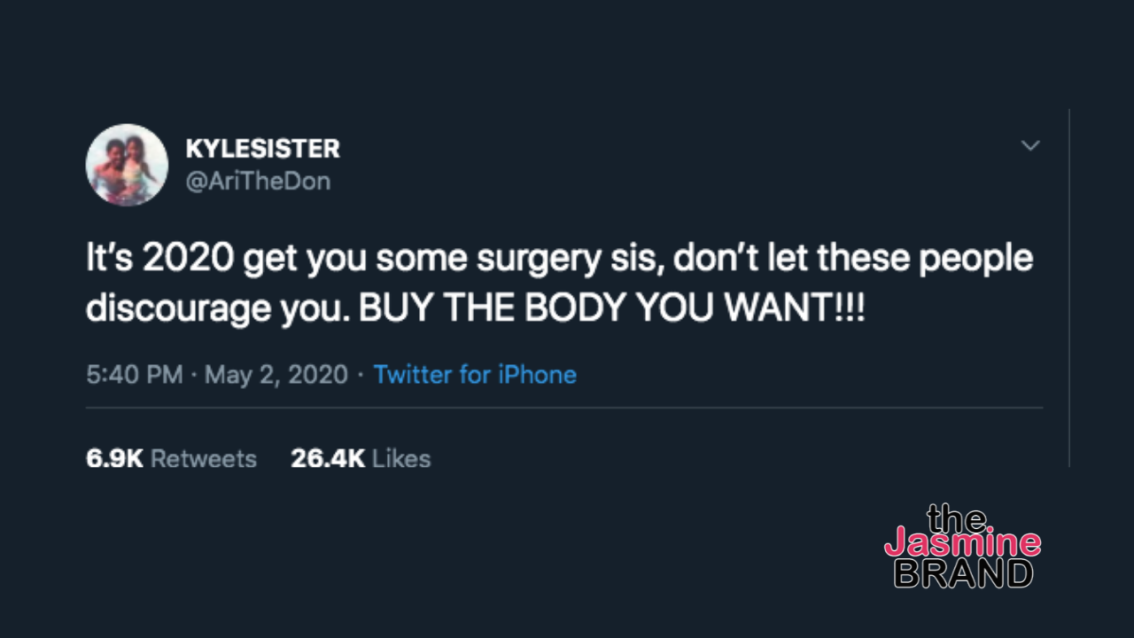 “It’s 2020 get you some surgery sis, don’t let these people discourage you. BUY THE BODY YOU WANT!!!”