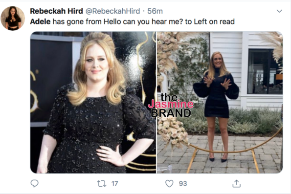 Adele gives credit to her trainer for the secret transformation and also reportedly has been on the Sirtfood diet, which focuses on foods that regulate a person’s metabolism. While most people are happy for the “Hello” singer’s weightless, some fans feel like she looked better before, while others remind us that Adele has always been that B****.