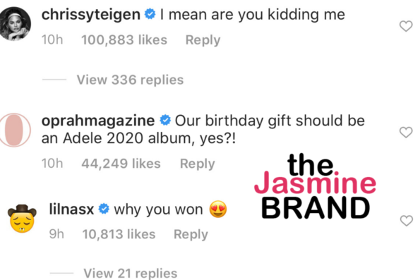 Celebs like Chrissy Teigen, Oprah Magazine reacted to the photo. Rapper Lil Nas X wrote“why you won ”