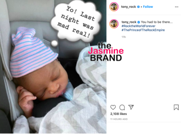 It looks like Tony Rock, who has yet to reveal the identity of the mother, is still getting used to his new addition. He shared a new photo of the adorable baby with the caption,