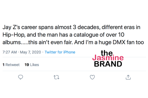 In a series of Tweets from 2017, Jay-Z included DMX in his list of artists who have inspired him: