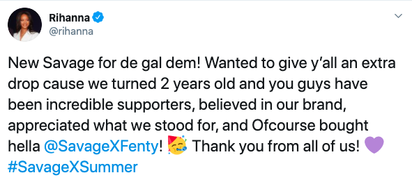 Of course, she also thanked Savage X Fenty supporters for helping the brand stay strong.