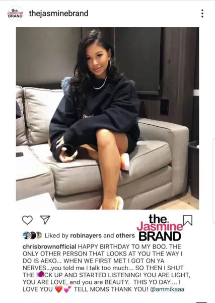Chris Brown is sending birthday love to Ammikka Harris, his girlfriend and mother of his son Aeko. He writes: