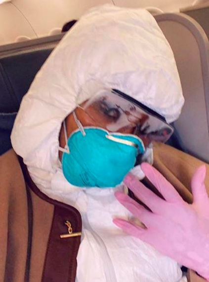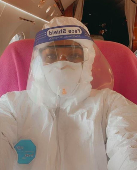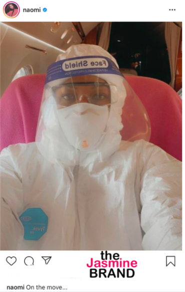 Naomi Campbell Wears Full-Body Protective Gear On Private Jet