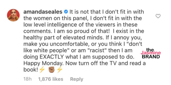 Once the video landed on The Real’s IGTV the video garnered more than 4k comments, and Amanda hopped in the comment section to defend her point, telling one person who left a negative comment, that she was just over her head:
