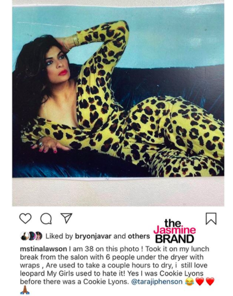 “Thats why i loved Cookie Lyons so much! Yes I was Cookie Lyons before there was a Cookie Lyons. With my animal prints. @tarajiphenson“