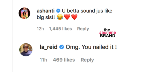 Industry friends and fans of the musical family all left comments, letting Tamar Braxton know that she sounded just like her sister, including Ashanti and L.A. Reid.