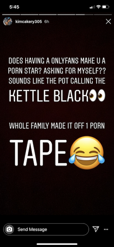 ” Does having an OnlyFans make u a porn star? Asking for myself?? Sounds like the pot calling the kettle black. Whole family made it off 1 porn tape.”