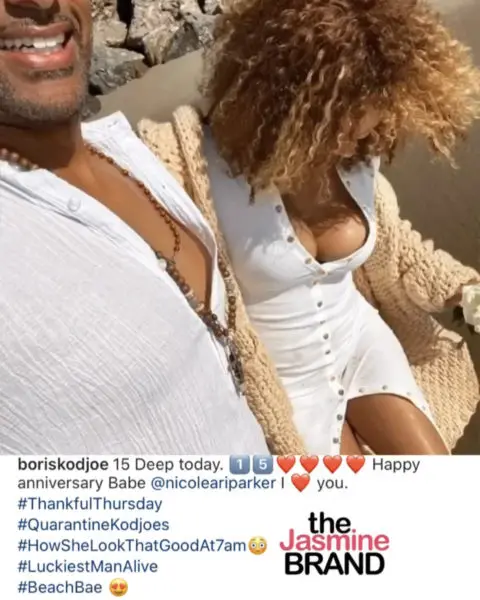 “Today was magical. Two beautiful souls. Thank you @boriskodjoe for bringing me in to produce this beautiful moment for my boo @nicoleariparker @babathestoryteller Thank you for your perspective and commitment to spiritual excellence you provided a beautiful experience. Happy Anniversary, wishing you 15 more years of love and bliss! #QuarantineLove”