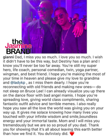 This wasn’t the only celebration to say farewell to Andre Harrell. His loving son, Gianni Harrell, and Gianni’s mother, Wendy Credle, also posted showing their love with photos and videos. Wendy Credle, who posted a video of she and her son, Gianni dancing together in good spirits, thanked everyone for their love and support. She writes,