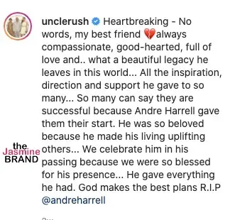 Russell Simmons posted upon the news of Harrell’s passing: