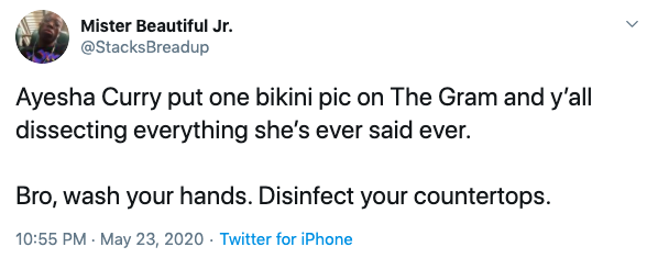 Ayesha Curry can’t wear a bikini without y’all bringing up what she said in the past. I don’t think she was talkin bout bathing suits. pic.twitter.com/Dyl0vx3mUH