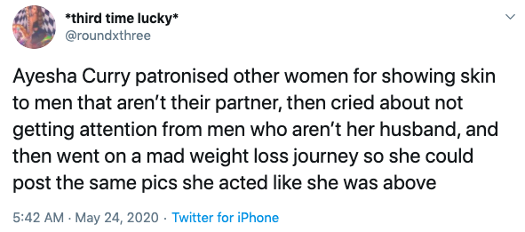 Although her fellow A-listers were impressed by the kitchen queen’s jaw-dropping body and flawless bikini pictures, Twitter fans’ reactions were the opposite. They expressed that the photo was contradicting, and that Ayesha Curry was a hypocrite due to previous tweets she made about women exposing their bodies on the internet back in 2015. See her previous tweets: