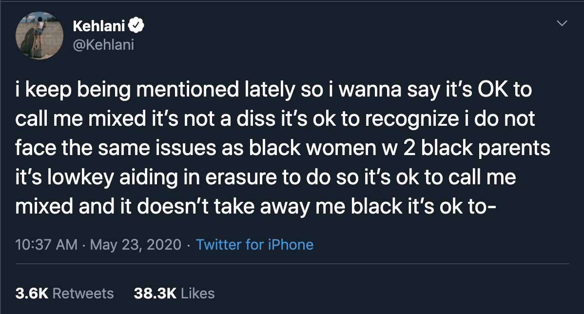 But it was this tweet that sparked the conversation about whether mixed or biracial people are black.