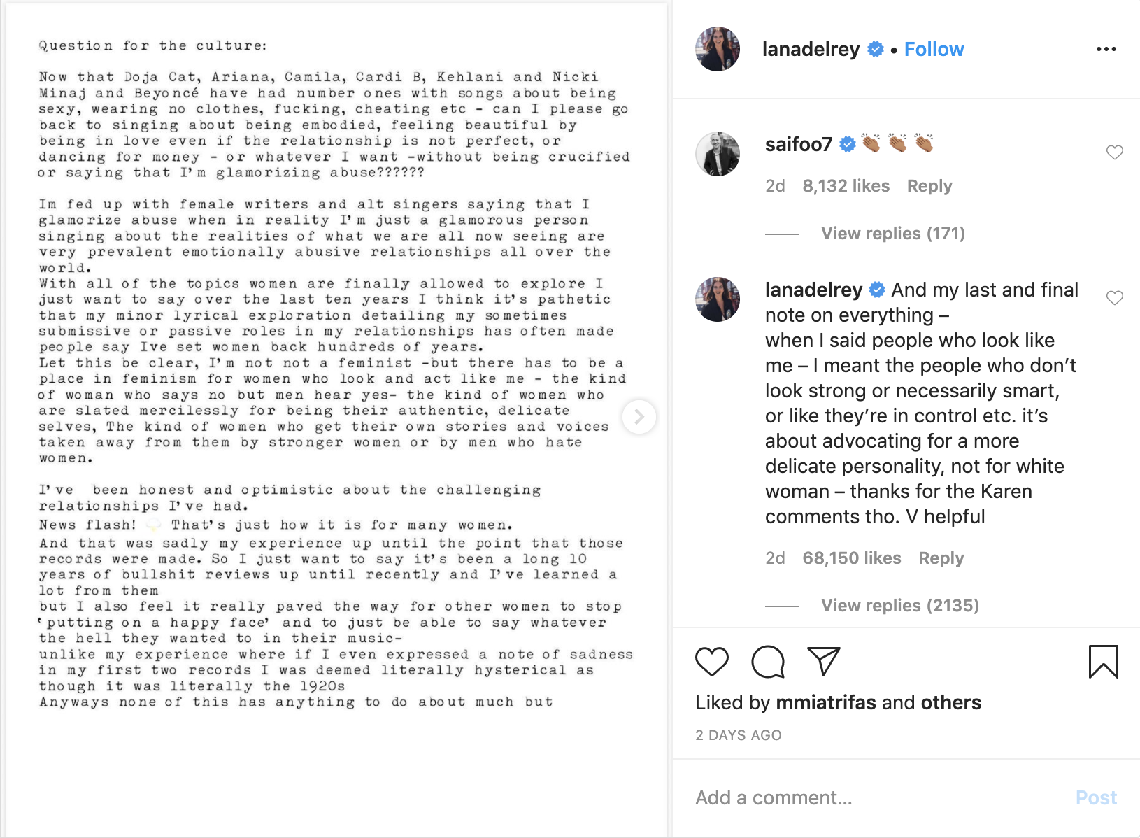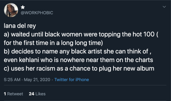 Twitter users felt as if Lana Del Rey was exclusively calling out black women in her controversial post.