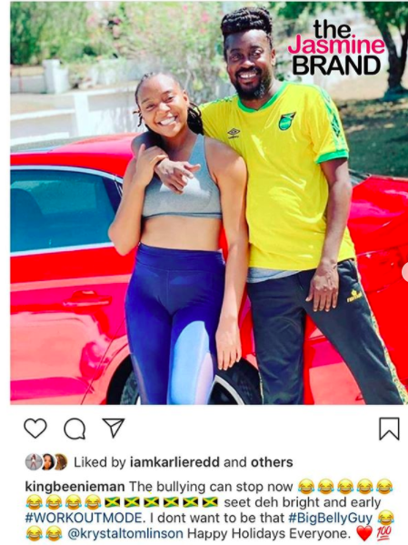 Well it seems that Beenie Man has seen what the internet had to say about his body and he’s ready to get back in shape. On Monday (April 25th) Beenie Man uploaded an image to Instagram with his arm around his girlfriend, Krystal Tomlinson, and they both appear to be wearing fitness clothing. In the caption for the post he lets it be known that he doesn’t want to be that ‘big belly guy’ anymore.