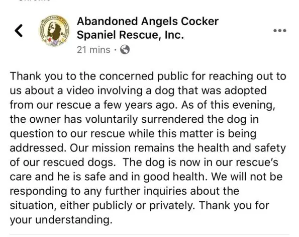 Amy even lost her dog after the footage of her nearly choking the puppy while calling 911 surfaced! Abandoned Angels Cocker Spaniel Rescue, Inc. also issued a statement.