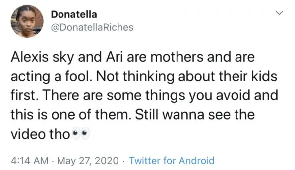 Ari & Alexis Sky fighting???! I am shocked..I am appalled..I am looking for the video..? pic.twitter.com/h36U96DMyi