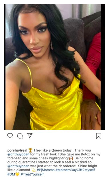 “I feel like a Queen today ! Thank you @dr.thuydoan for my fresh look ! She gave me Botox on my forehead and some cheek highlighting!Being home during quarantine I started to look & feel a bit tired so @dr.thuydoan was just what the dr ordered! Shine bright like a diamond #PjMomma#MothersDayGift2Myself