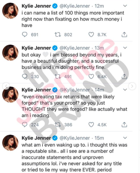 Kylie caught wind of Forbes’ claims, and slammed the publication with a series of tweets: