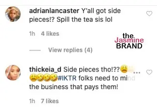 “Side pieces tho!?? #IKTR folks need to mind the business that pays them!”