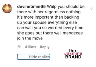 There were many fans that encouraged Mendeecees Harris as he supported his wife, but one fan didn’t seem to be pleased with his absence from his wife. @devinetimin65 stated,