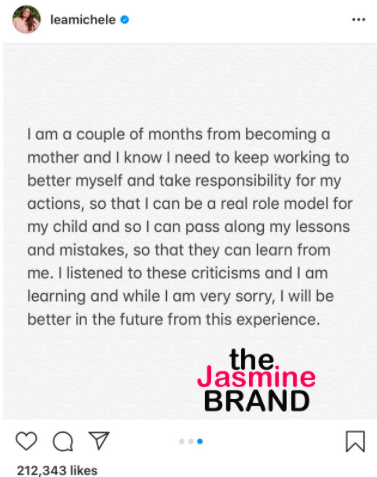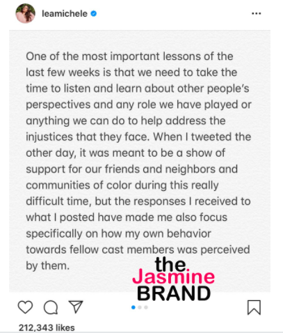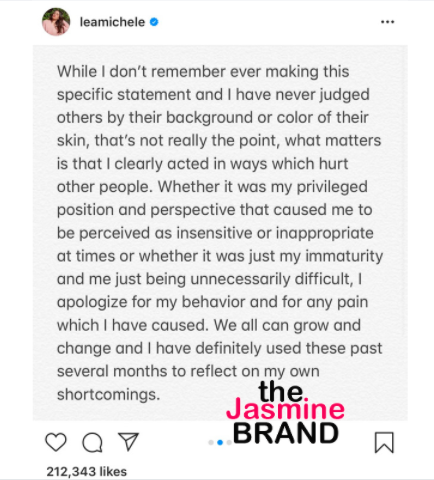 Lea Michele has also apologized in a statement on Instagram.