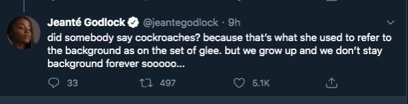 Jeanté Godlock who now stars on Netflix original series Daybreak claimed that during her time as an extra on “Glee”, Lea Michele would refer to the background characters as cockroaches.