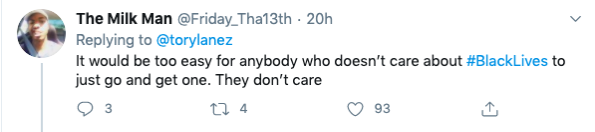 “It would be too easy for anybody who doesn’t care about #BlackLives to just go and get one. They don’t care”