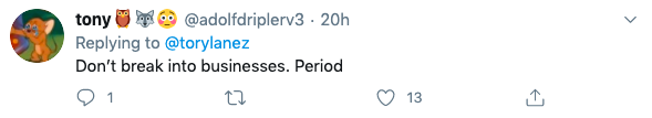 “We should create a FLAG or SYMBOL that can be PLACED on THE STORE FRONT OF BUSINESSES(LOCAL AND CORPORATE )that SUPPORT THE PROTEST)…SO looters can know to leave those places alone .It will show if all looting is going on for the same cause , and protects supportive businesses”