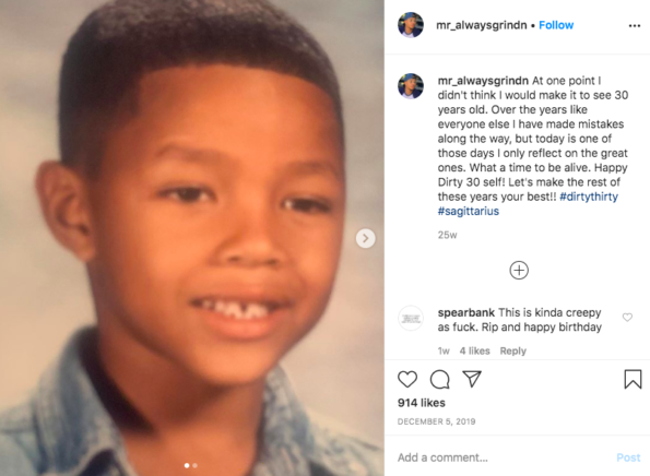 “At one point I didn’t think I would make it to see 30 years old. Over the years like everyone else I have made mistakes along the way, but today is one of those days I only reflect on the great ones. What a time to be alive. Happy Dirty 30 self! Let’s make the rest of these years your best!! #dirtythirty #sagittarius”