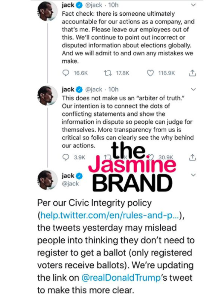 “Fact check: there is someone ultimately accountable for our actions as a company, and that’s me. Please leave our employees out of this. We’ll continue to point out incorrect or disputed information about elections globally. And we will admit to and own any mistakes we make.”