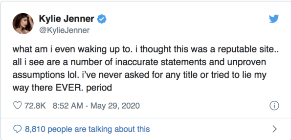“We have reviewed Forbes’ article accusing Kylie of engaging in deceit and a ‘web of lies’ to inflate her net worth. The article is filled with outright lies.”