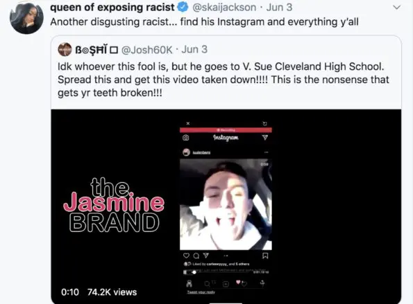 “If you known a racist and would like to expose them, dm me on Instagram and give me all videos/screenshots, Instagram and what school they go to. I might not answer but I do see it and will expose.”