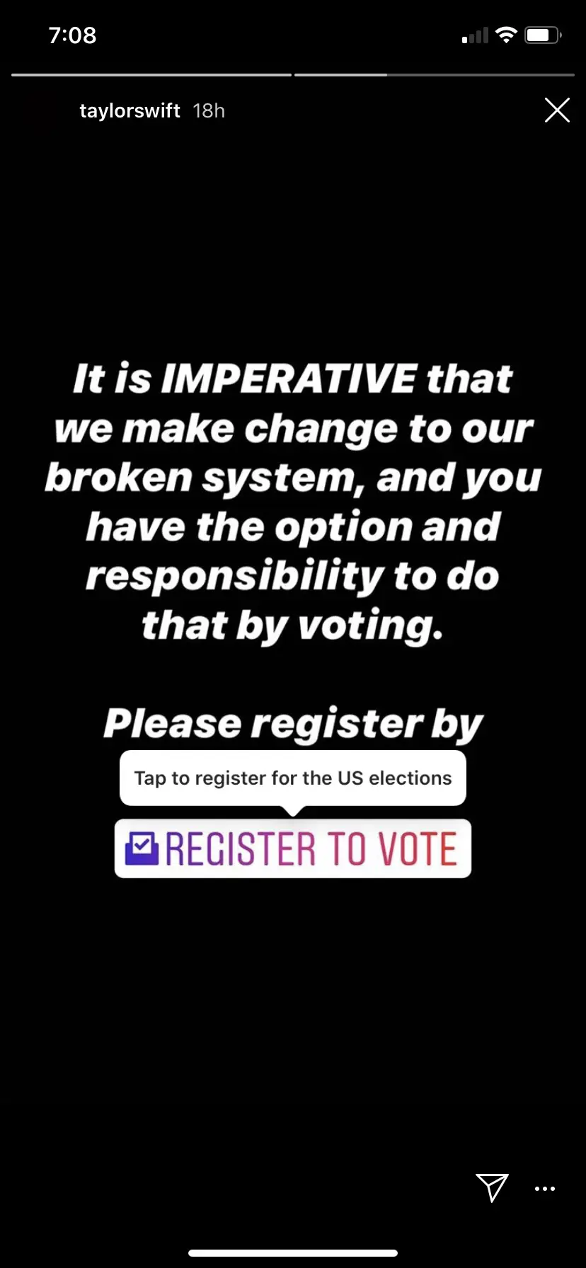 The singer then encourages her followers to vote in this year’s election, stating,