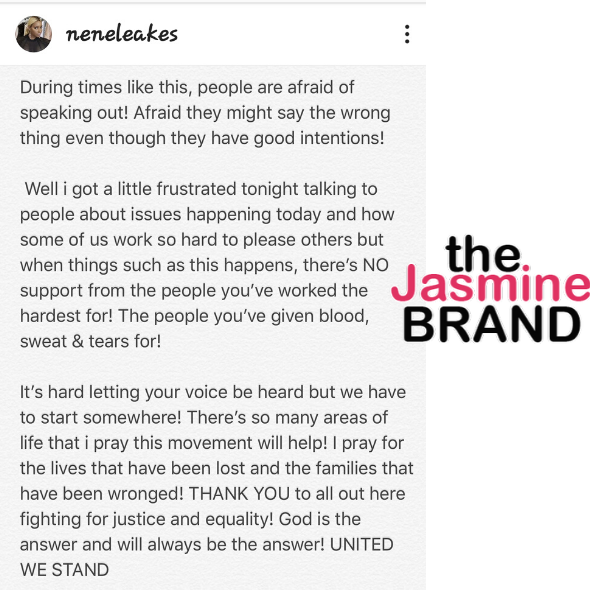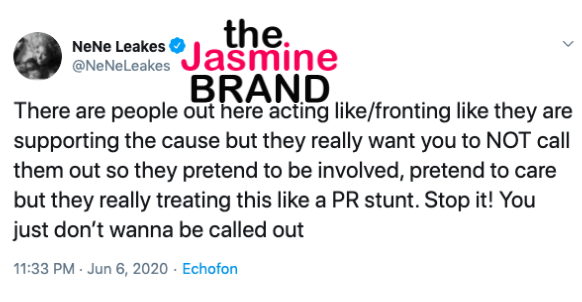 However, NeNe Leakes‘ most recent post on her official Instagram is all serious. In the middle of nationwide and global protests in support of justice for George Floyd, a 46-year-old black man who died shortly after former cop Derek Chauvin knelt on his neck for over 8 minutes, and many other black people who have unjustly died in police custody, NeNe Leakes has spoken out and referenced some recent frustration she’s had: