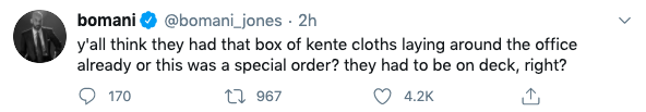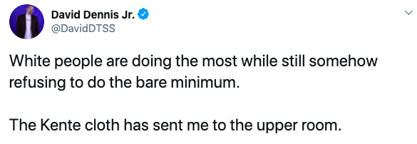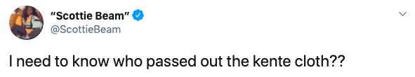 Another user admitted that she didn’t see the use of kente cloth coming. Kente stoles, traditionally worn by African royalty, has grown in popularity amongst the African American community, showing solidarity with blacks while honoring their heritage.