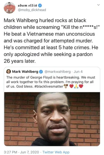 Take a look at social media’s commentary on Mark Wahlberg’s Black Lives Matter post below.