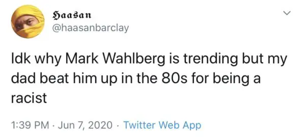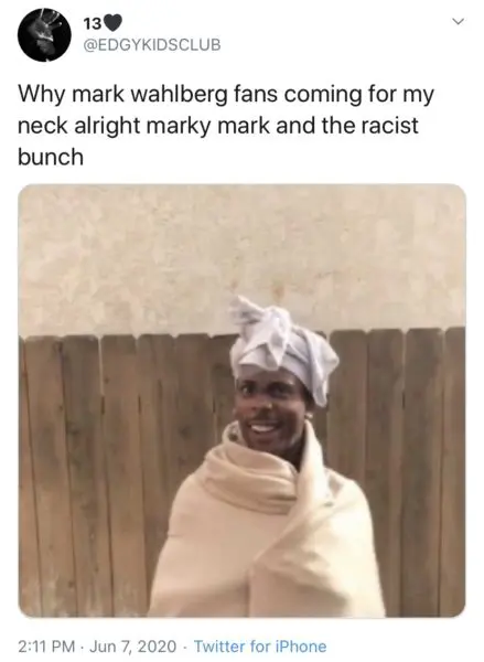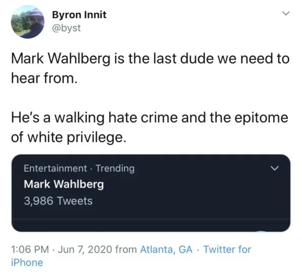“If you still don’t know what white privilege is, Mark Wahlberg committed hate crimes, has a Wikipedia section dedicated to it, and we never talk about it.”