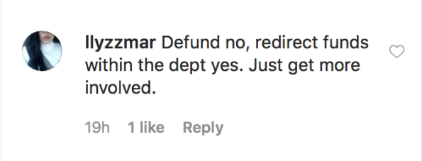 A fan commented, calling people who agree with defunding the police, “f*cking dumb,”