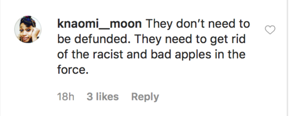 Comments began rolling, some agreeing with defunding the police, others simply wanting to see the racist cops removed.