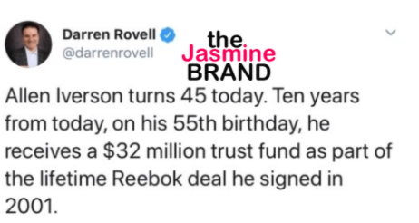 “Allen Iverson turns 45 today. Ten years from today, on his 55th birthday, he receives a $32 million trust fund as part of the lifetime Reebok deal he signed in 2001.”