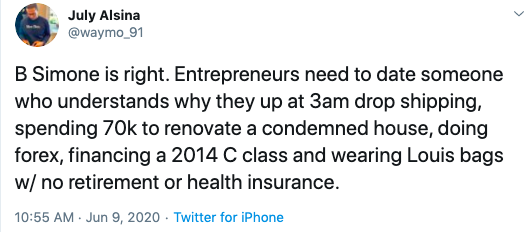 B. Simone Doesn’t Want A Man That Has A 9 To 5: Entrepreneurs Should Date Entrepreneurs