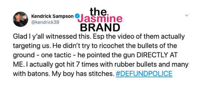 Insecure actor Kendrick Sampson also shared his support in defunding the police departments while showing the bruises he received while protesting against police brutality.