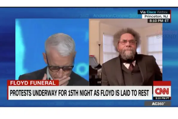 Anderson Cooper had Cornel West on his CNN evening talk show to discuss George Floyd‘s memorial service and all things surrounding social injustice for black people in America. During the chat, Anderson Cooper held back tears a few times during the almost 10-minute clip. Anderon Cooper tearfully told Cornel West,