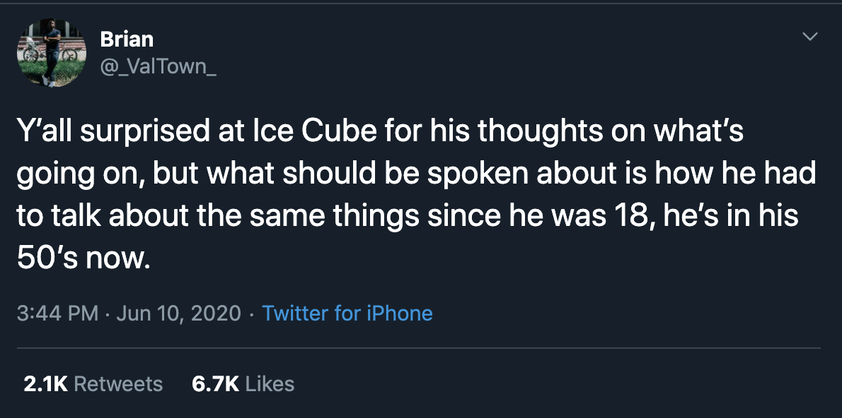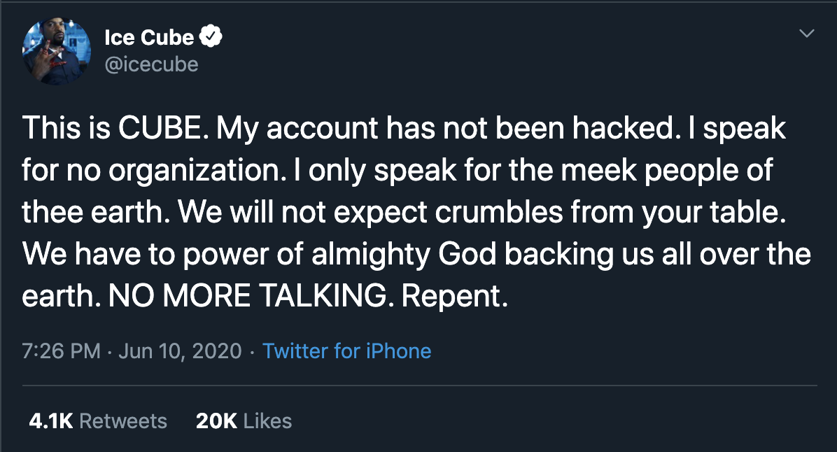 — Ice Cube (@icecube) June 10, 2020