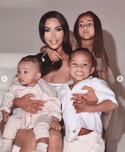 Kim Kardashian with her kids North, Saint and Chicago
