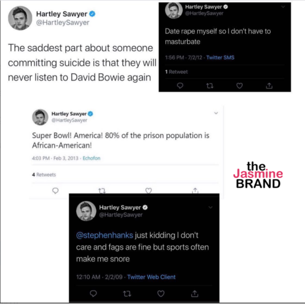 She added old tweets allegedly posted by the actor, prior to joining The CW series, which have resulted in him being fired from the show. On Monday (June 8th), a statement from The CW, Warner Bros. TV and Berlanti Productions and executive producer Eric Wallace released a statement on Hartley Sawyer’s firing:
