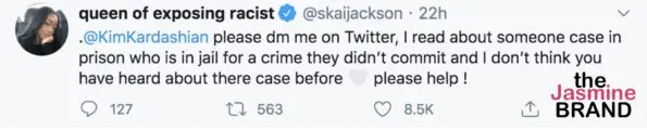 Skai Jackson isn’t only calling out racists on her Twitter, she also reached out Kim Kardashian-West for help to get imprisoned black people released from jail.